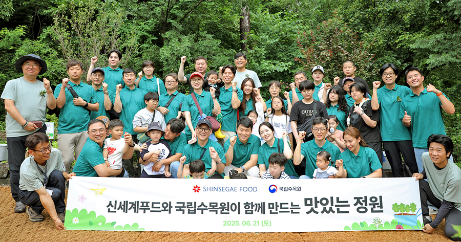 신세계푸드가 임직원과 가족들을 대상으로 50여종의 자생식물과 채소류를 식재하며 국립수목원 내 ‘맛있는정원’ 조성 활동에 나섰다.