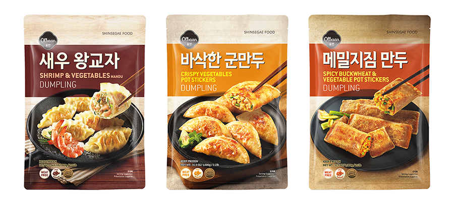 먼저 기존 수출제품 4종 외에 ‘새우 왕교자’, ‘바삭한 군만두’, ‘메밀지짐 만두’ 등 3종을 새로 개발해 총 7종으로 제품 라인업을 늘렸다. ‘새우 왕교자’는 속이 꽉찬 왕교자 형태의 만두로, 통새우살을 그대로 넣어 입안에서 톡톡 씹히는 식감을 살린 것이 특징이다. ‘바삭한 군만두’는 고소하고 담백한 두부에 불고기 시즈닝으로 맛과 풍미를 더했고, 납작한 모양으로 만들어져 굽기에도 편하다. ‘메밀지짐 만두’는 고소한 메밀향이 가득한 전병피에 두부와 함께 매콤하고 칼칼한 김치를 넣어 속을 채웠다.