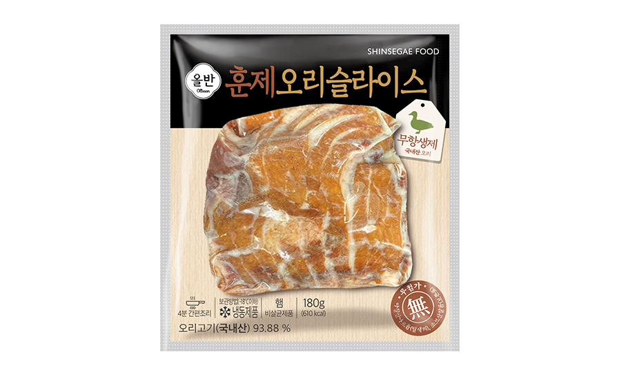 이러한 소포장 육류 가정간편식의 인기에 신세계푸드는 지난 2월 마켓컬리에서 구입할 수 있는 ‘올반 훈제오리 슬라이스’를 출시하는 등 라인업 확대에 나섰다. 웰빙 사료를 먹고 자란 국내산 무항생제 오리고기를 훈연해 먹기 좋은 크기로 슬라이스 한 제품이다. 특히 생강, 마늘, 양파 분말로 시즈닝 해 잡내를 없애고 감칠맛을 더했을 뿐 아니라, 발색제(아질산나트륨)나 보존료(소브산칼륨)를 첨가하지 않아 남녀노소 안심하고 먹을 수 있다. 또한 1인 분량인 180g씩 소포장 되어 있어 보관이 편리하고 남은 고기를 처리해야하는 번거로움을 없앤 것이 장점이다.