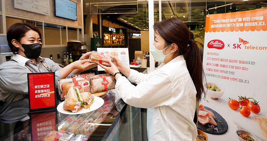 27일 신세계푸드는 서울 중구 을지로 SKT타워 지하 구내식당에서 SK텔레콤(이하 SKT) 임직원들을 대상으로 자사의 대체육 ‘베러미트(Better Meat)’의 콜드 컷 슬라이스 햄을 활용한 샌드위치를 제공하기 시작했다고 밝혔다.