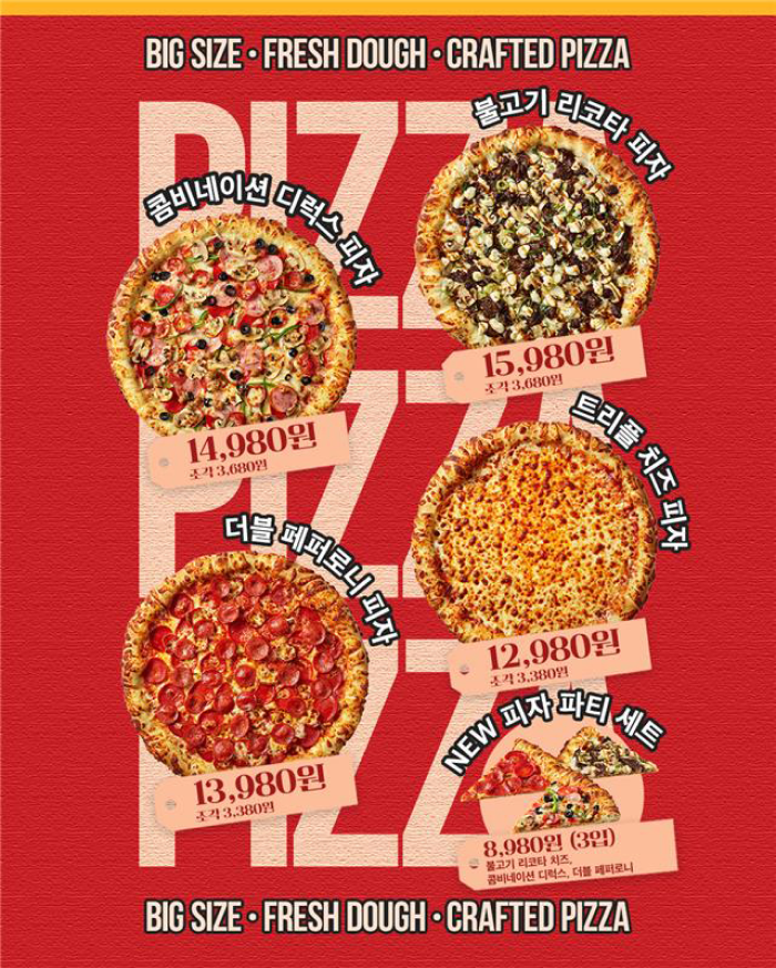 가장 높은 판매고를 기록한 제품은 ‘콤비네이션 디럭스 피자(1만 4980원)’로 누적 판매량 10만개를 넘겼다. 페퍼로니와 햄 등 4가지 고기 토핑에 양파, 양송이, 피망 등 채소를 풍성하게 더해 시각적 만족도와 식감을 동시에 강화한 점이 대중적 선호로 이어졌다. 이와 함께 불고기와 리코타 치즈를 강조한 ‘불고기 리코타 피자(1만 5980원)’, 두 가지 페퍼로니를 적용한 ‘더블 페퍼로니 피자(1만 3980원)’, 모짜렐라, 체다, 고다 치즈를 조합해 풍미를 높인 ‘트리플 치즈 피자(1만 2980원)’ 등도 1만원대 가격으로 즐길 수 있는 가족 먹거리로 자리를 잡는 분위기다.