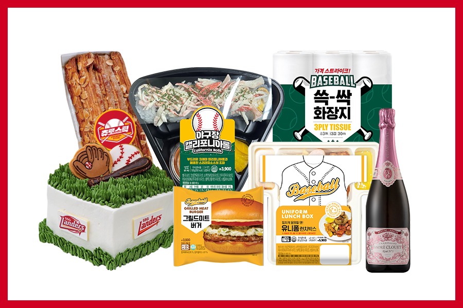 이마트24에서는 랜더스데이에만 맛볼 수 있는 가성비 도시락을 출시한다. 랜더스데이의 모델 추신수 선수를 모티브로 한 물과 간식 등도 특별한 재미를 선사한다. JW메리어트에서 준비한 야구 테마의 고급 디저트는 선물용으로 제격이다. 이 밖에도 다양한 계열사에서 선보이는 랜더스데이 콜라보 상품들에 주목해 보자.