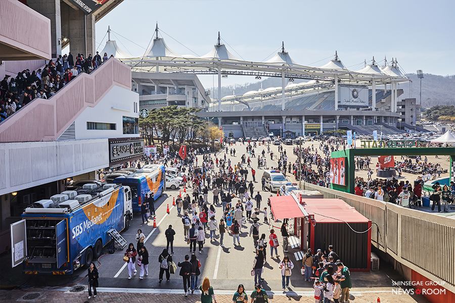 이마트24, 스타벅스, 노브랜드버거 등 경기장 내 입점된 신세계그룹의 그룹사 매장들도 발 디딜 새 없이 붐비는 모습이었다.