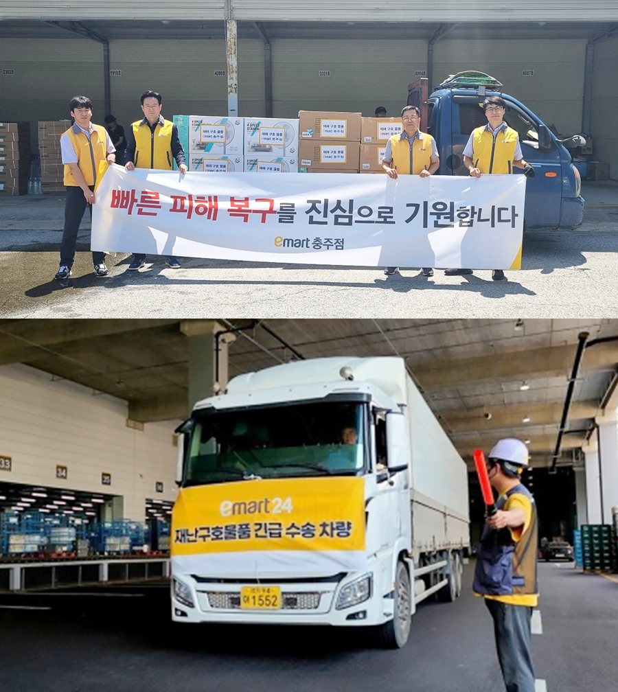 이와 별도로 이마트 충주점 등 수해 피해 지역 인근 이마트 점포들은 도움을 필요로 하는 지자체에 직접 구호 물품을 지원할 방침이다.