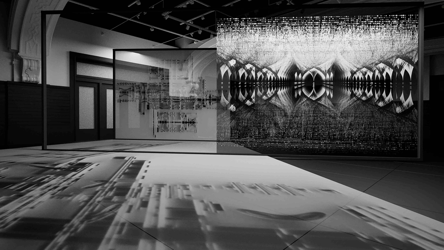 각각 인간과 기계를 상징하는 두 개의 스크린에서는 ‘섞일 수 없을 듯한’ 이질적 요소들이 생성되고 얽혀 하나의 공동체를 형성하는 과정을 6분 가량의 영상으로 감상할 수 있다.