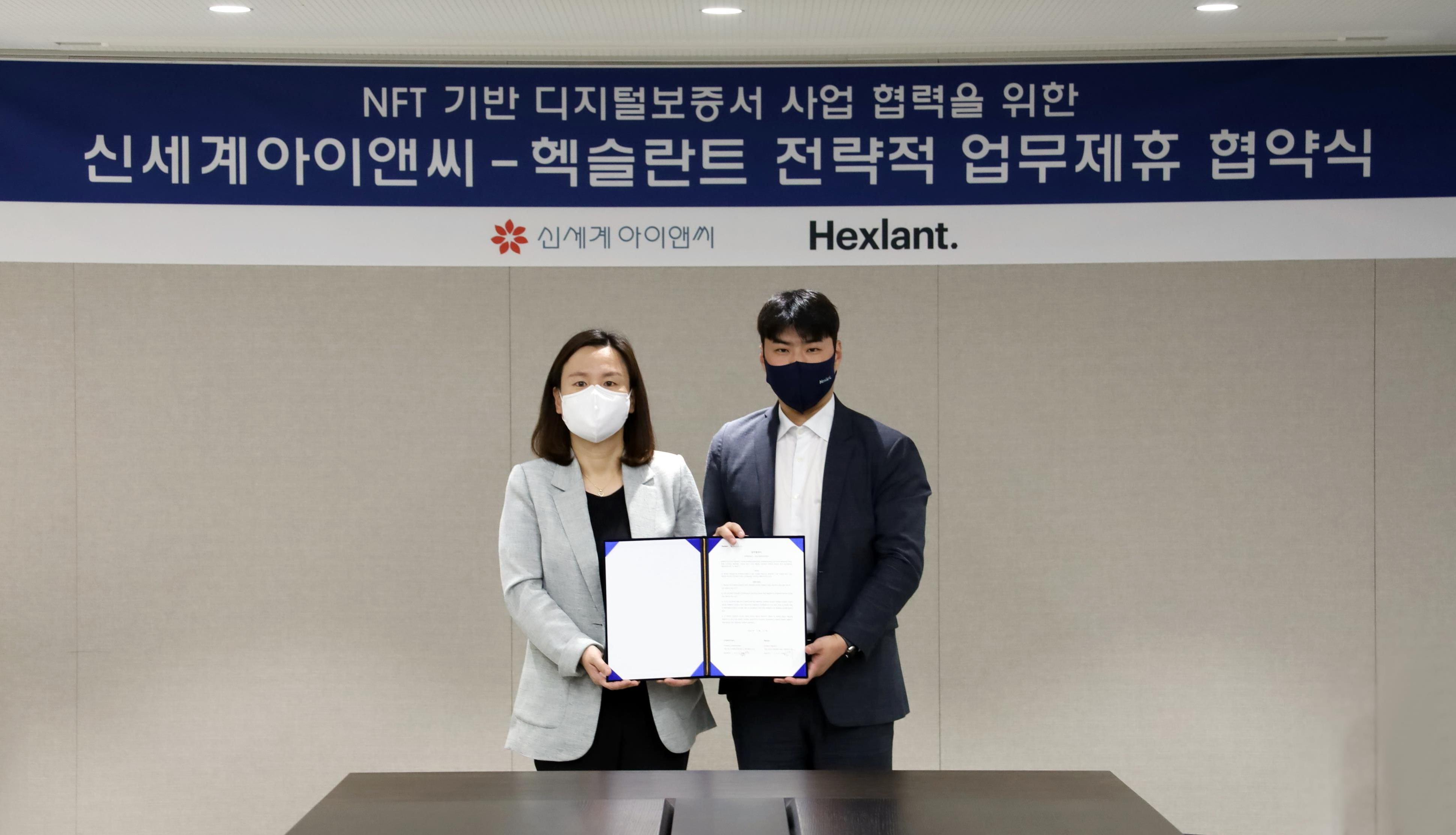MEDIA 글자 크기 보통 크게 아주 크게 공유하기 페이스북 X 카카오톡 링크 복사 링크 복사됨 도구 보기 이미지 다운로드 신세계아이앤씨, 헥슬란트와 MOU 체결, SaaS형 디지털 보증서 서비스 사업 협력한다 2022.06.16 신세계아이앤씨
