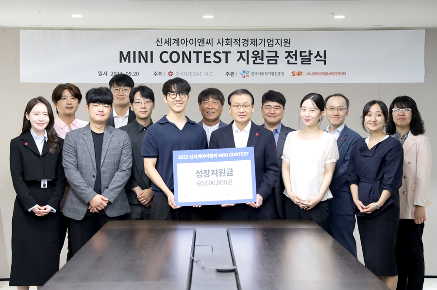 신세계아이앤씨(대표 형태준)가 사회적경제기업을 지원하는 ‘미니콘테스트’를 통해 최종 5개 기업에 총 6,000만원 성장지원금을 전달했다.