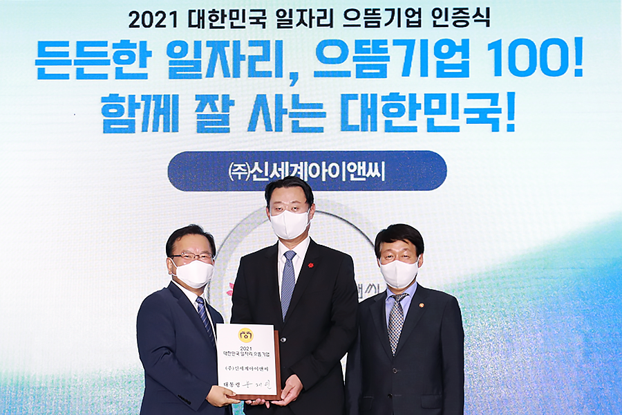 신세계아이앤씨가 고용노동부 주관 ‘2021 대한민국 일자리 으뜸기업’으로 선정됐다.