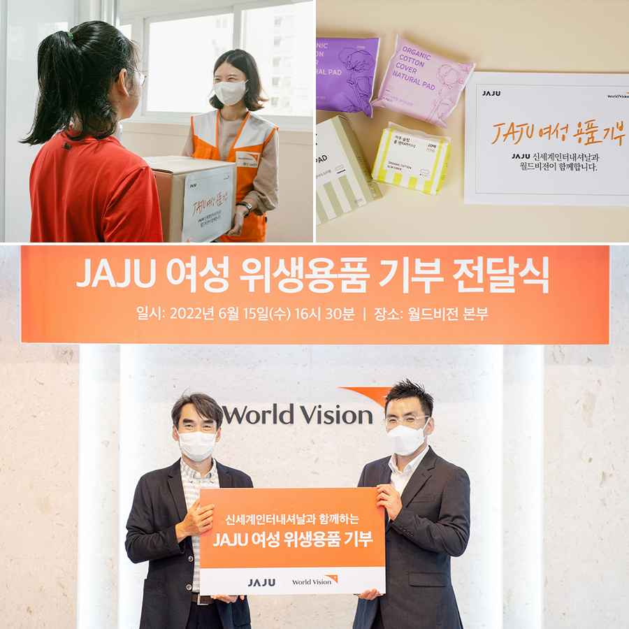 신세계인터내셔날의 라이프스타일브랜드 자주(JAJU)는 이달 15일(수) 오후 국제구호개발 NGO 월드비전에 지역사회 여성청소년을 위한 6천 7백만원 상당의 여성 위생용품을 전달했다고 밝혔다.
