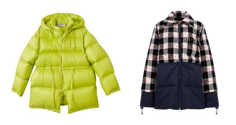 ‘아크네 스튜디오(Acne Studio)’는 풍성한 볼륨감이 돋보이는 오버사이즈 숏 다운 점퍼들을 선보였다. 허리 아래까지 내려오는 중간 기장으로 편안하게 착용 가능하며, 허리 부분 스트링(줄)으로 라인을 강조해 또 다른 스타일을 연출할 수 있다. 가슴의 브랜드 로고가 브랜드 정체성을 드러내며, 네온 옐로우부터 카키, 레드, 블랙 등의 색상이 특징적이다.