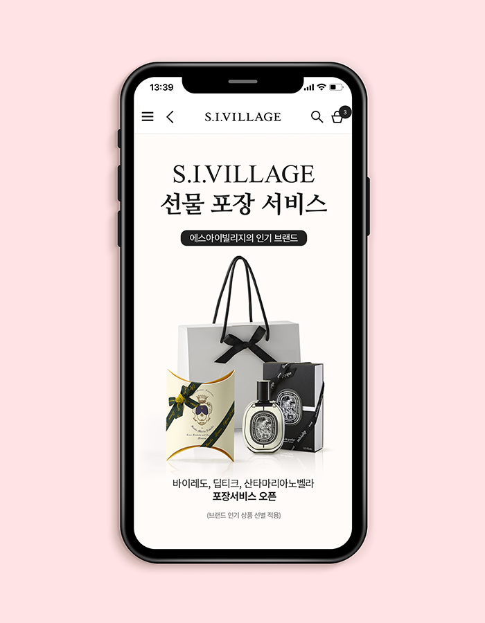 에스아이빌리지는 이달 27일부터 다음 달 16일까지 선물하기를 통해 가장 많이 판매된 향수 브랜드의 포장 서비스를 우선적으로 제공한다. 포장 서비스 대상은 ‘스몰 럭셔리’로 각광 받고 있는 니치 향수 브랜드 산타 마리아 노벨라, 딥티크, 바이레도의 대표 제품 44개로 향수, 디퓨저, 방향제, 핸드크림 등 다양하다.
