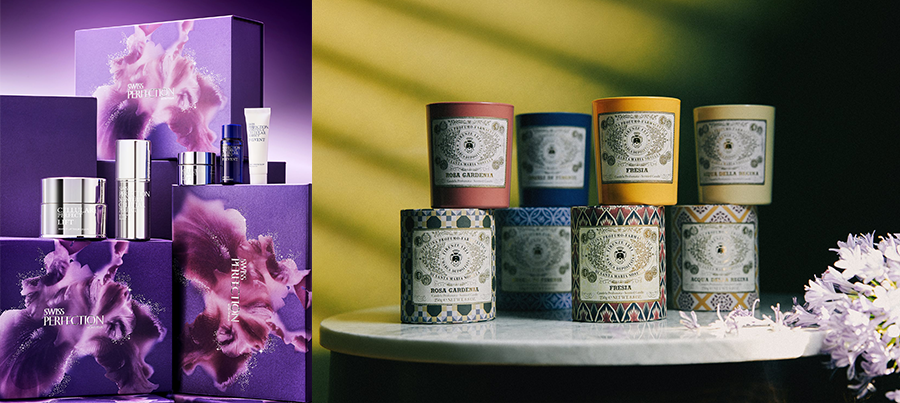 먼저 명품 스킨케어 브랜드 스위스퍼펙션(SWISS PERFECTION)은 내달 홀리데이 에디션으로 ‘윈터 아이리스 위시 퍼펙트 리프트 세트’를 출시한다. 신제품 ‘퍼펙트 리프트 리치크림’과 브랜드 베스트셀러 ‘퍼펙트 리프트 세럼’ 구성으로 아이리스 꽃에서 영감 받은 고급스러운 보라빛 패키지가 돋보인다.