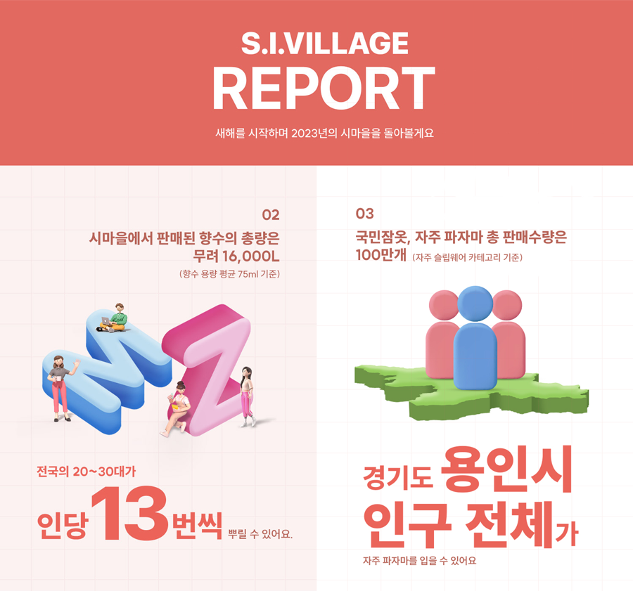 신세계인터내셔날의 자체 디지털 플랫폼 에스아이빌리지(S.I.VILLAGE)는 새해를 맞아 고객 소비 트렌드를 분석한 2023 연간 리포트를 공개했다. 지난 1년 간 에스아이빌리지의 판매 데이터를 분석해 고객들이 재미있게 볼 수 있도록 인포그래픽으로 표현했으며, 고객 사은행사도 진행한다.