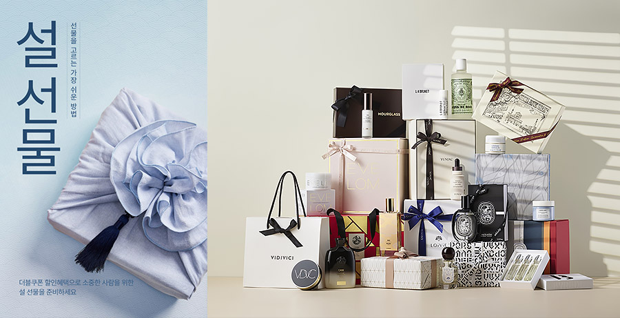 카테고리별 기획전도 준비되어 있다. 딥티크, 산타마리아노벨라, 연작, 스위스퍼펙션, 아워글래스, 로라메르시에 등 인기 뷰티 브랜드가 총출동한 ‘시뷰티 설 기프트’전에서는 한정 구성의 선물 세트부터 브랜드별 쇼핑백과 박스, 풍성한 사은품을 증정한다. 10% 쇼핑백 쿠폰과 5% 더블 쿠폰을 발급해 더욱 합리적인 쇼핑이 가능하다.