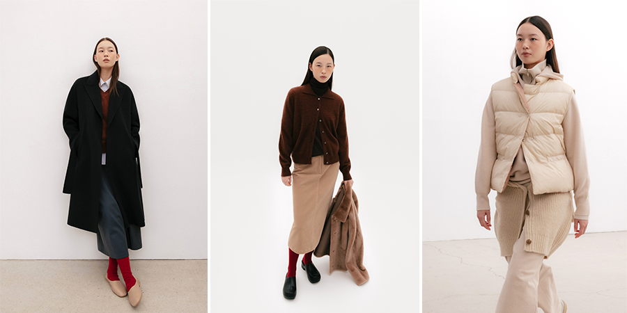 아우터의 경우 탈부착 가능한 머플러가 달린 니트 코트부터 캐시미어와 울 블렌디드 소재의 핸드메이드 재킷, 부클 소재의 트위드 재킷, 풍성함과 보온성을 갖춘 구스다운 패딩 등 다양하게 선보였다.