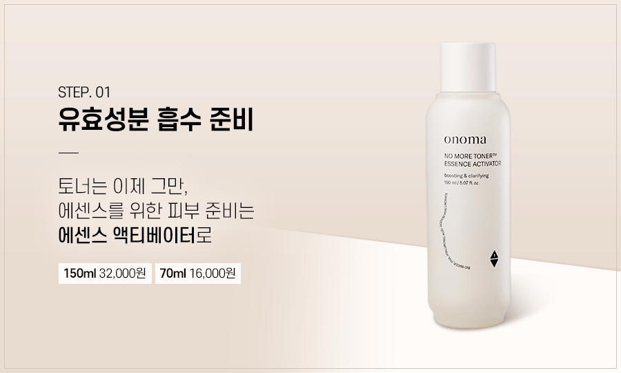 화장품은 개수가 중요한 게 아니다. 내 피부가 원하는 효과를 파악하고, 그에 따른 에센스를 선택하는 게 포인트다. 매일매일 똑같은 피부 관리에서 벗어나 자신에게 맞춘 오노마 스킨케어 루틴으로 피부 밸런스를 되찾길 바란다.