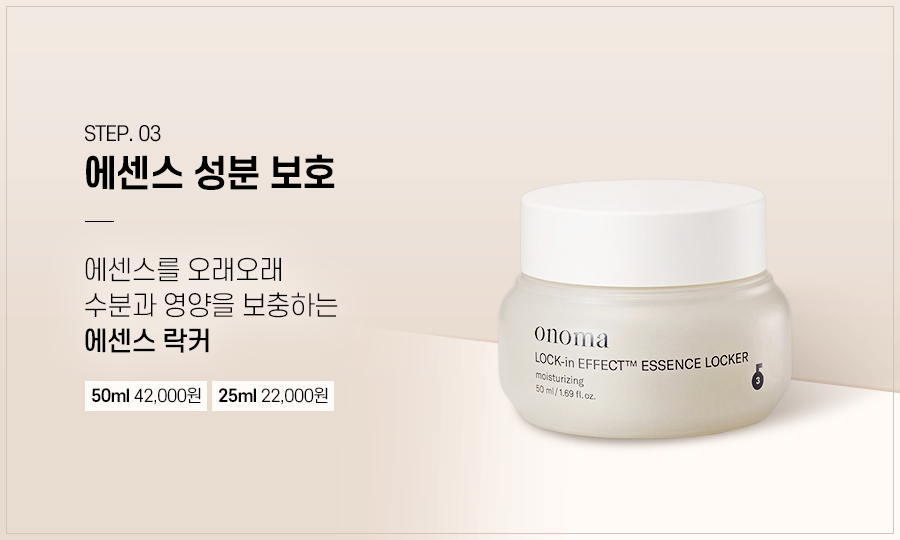 3단계는 락커다. 이름에서 느껴지는 것처럼 에센스에 자물쇠를 걸어 잠그는 듯한 컨셉의 제품이다. 풍부한 영양 보습막이 피부를 오래도록 촉촉하게 가꾸어 준다. 아침저녁으로 3단계는 동일하다. 바르는 순서를 알기 쉽도록 각 용기 전면에 1, 2, 3의 숫자도 함께 표시했다.