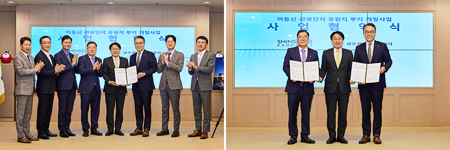 신세계프라퍼티는 22일 광주광역시도시공사와 ‘어등산관광단지 부지 개발 공동 추진’ 사업 협약을 맺고, 신속하고 성공적인 사업 추진을 위해 상호 협력하기로 뜻을 모았다고 밝혔다. 협약에는 구체적인 사업내역과 일정 및 협약이행보증금 등이 담겼다. 광주광역시도시공사는 관광단지 조성 사업 행정절차 이행과 토지 분양을 약속하고, 신세계프라퍼티는 유원지 부지를 호남권의 대표 관광거점으로 개발하기 위한 사업계획 수립 및 조성에 나선다.