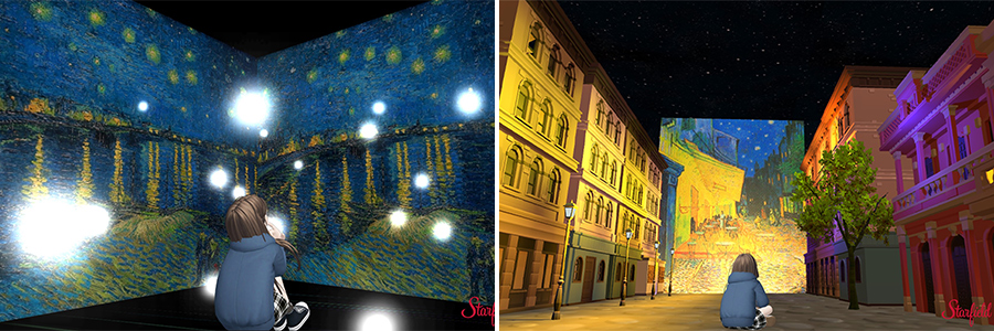 아바타와 함께 제페토 속 문화예술 콘텐츠를 누리고 싶다면, 게임필드 미션을 완료한 후 3층에서 ‘아트필드’를 찾아보자. 빈센트 반 고흐의 대표 작품인 ‘론강의 별밤’과 ‘밤의 카페테라스’를 3D로 구현해 입체적으로 감상할 수 있다.