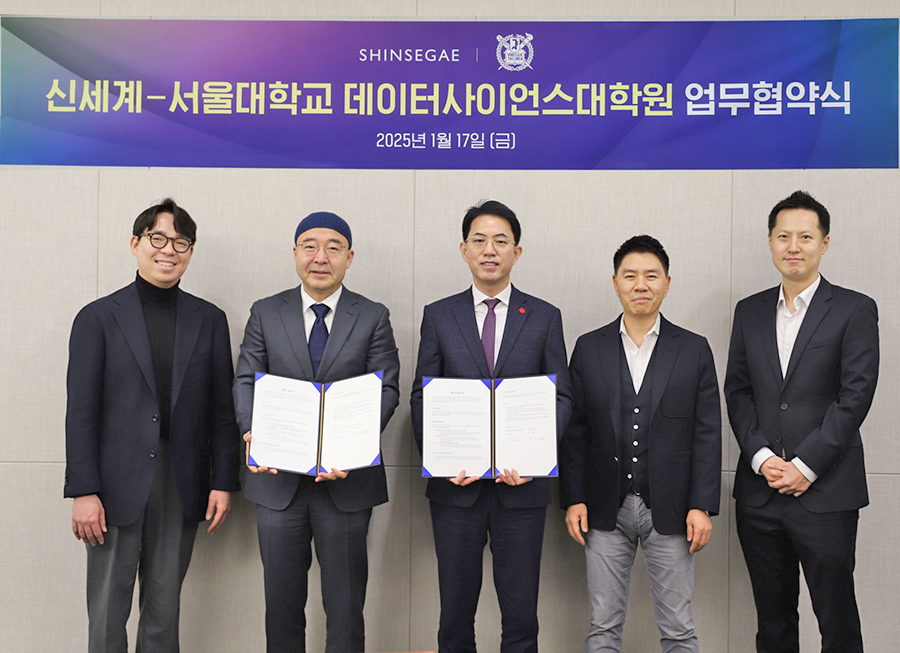 신세계백화점은 최근 서울대 데이터사이언스대학원과 업무협약(MOU)’을 체결, AI·빅데이터 분야에서 공동 연구를 진행하고 연구 정보를 교류하는 등 폭넓게 협력하기로 했다. 협약식은 17일 서울 서초구 신세계백화점 본사에서 신세계백화점 영업본부장 김선진 부사장과 이성환 영업전략담당 상무, 서울대학교 데이터사이언스대학원 이재진 원장, 오민환 교수 등 주요 관계자들이 참석한 가운데 이뤄졌다.