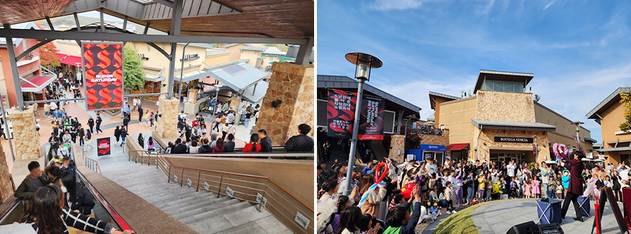 부산 프리미엄 아울렛은 ‘핑크퐁과 아기상어의 댄스파티 인 부산’이 열린다. 중앙광장에는 6m 높이의 대형 아기상어 조형물과 상어 가족 포토존이 들어섰고, 팝업 스페셜 존에서는 캐릭터 풍선, 캐리커처, 솜사탕 자판기 등 다양한 즐길 거리를 만나볼 수 있다. 오후에는 핑크퐁, 아기상어, 튼튼쌤과 함께 노래와 춤을 따라 즐길 수 있는 댄스파티와 포토타임도 진행된다.