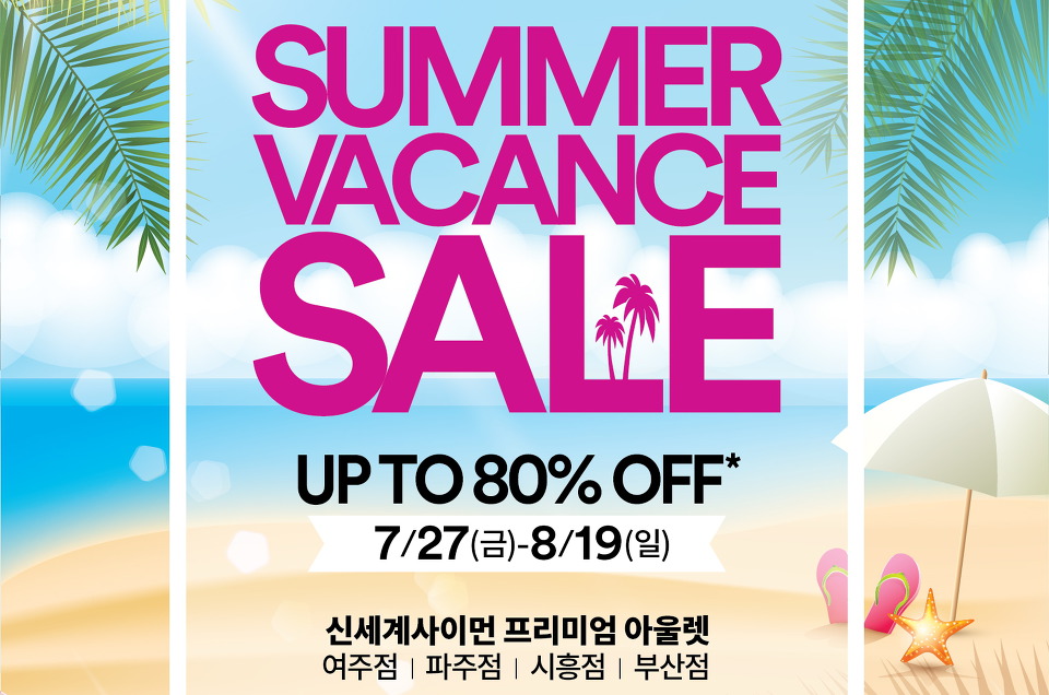 신세계사이먼(대표 : 조병하)은 오는 27일부터 8월 19일까지 여주∙파주∙ 시흥∙부산 프리미엄 아울렛에서 ‘썸머 바캉스 세일’을 열고, 500여 개 브랜드의 여름 상품을 최고 80% 할인한다.