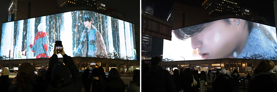지난 6일 신세계는 초대형 스크린 신세계스퀘어를 통해 오후 6시~9시 매 시각 정각 총 4회에 걸쳐 뮤직비디오 풀버전을 선보인 데에 이어 7일부터 오는 12일까지는 뮤직비디오의 하이라이트를 30초 영상에 담아 상영한다.
