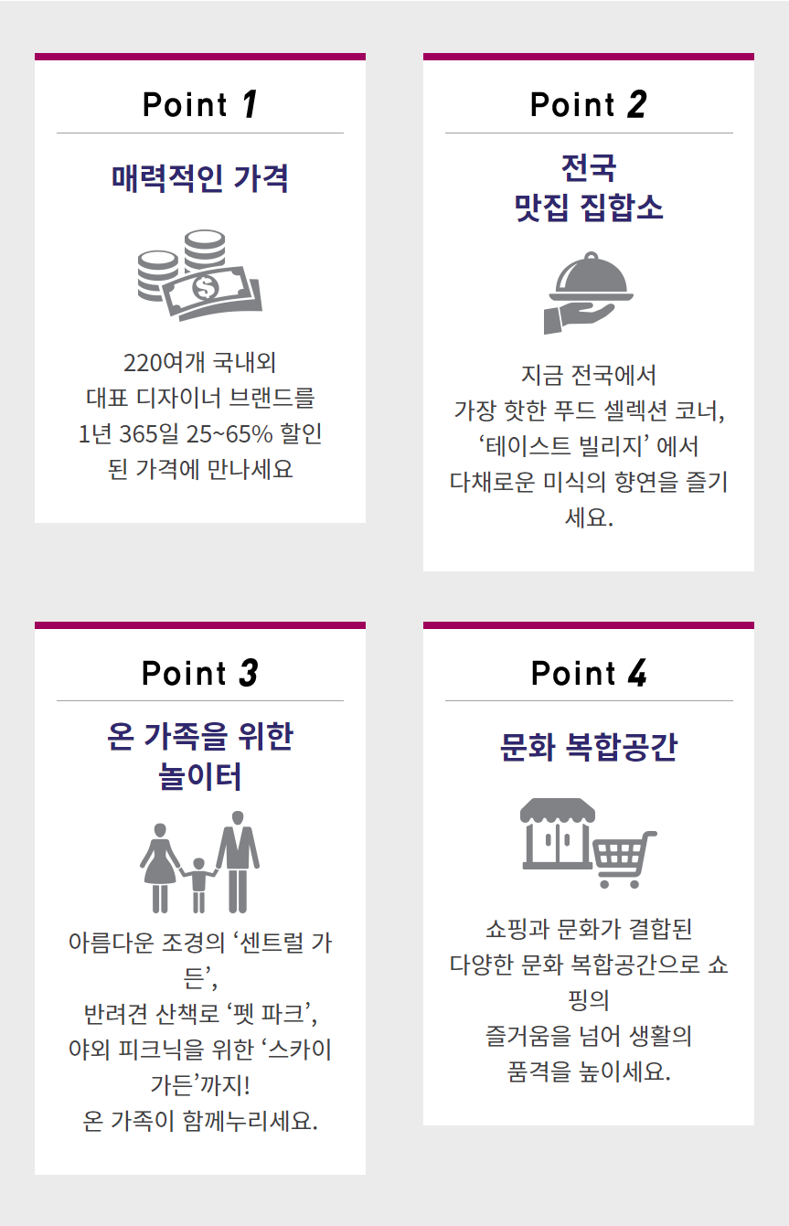 정통 프리미엄 아울렛의 네 가지 매력 포인트!