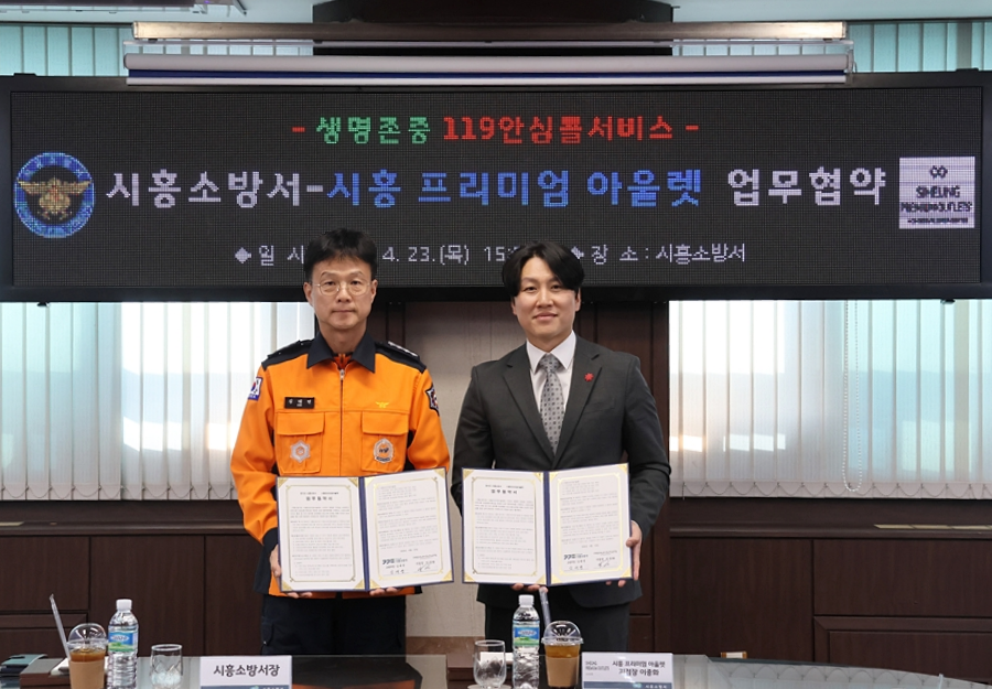 양사는 23일 오후 경기도 시흥시 시흥소방서에서 이종화 시흥 프리미엄 아울렛 점장과 김태연 시흥소방서장을 비롯한 관계자들이 참석한 가운데 협약식을 진행했다. 이번 협약은 시민들이 일상 속 공간에서 응급 상황에 더 신속하게 대응할 수 있도록 ‘119안심콜’ 서비스를 홍보하고 시민 참여형 안전체험 프로그램 운영에 협력하기 위해 마련됐다.