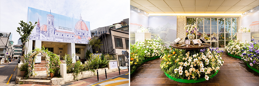 팝업스토어가 마련된 성수동 테디스오븐 건물 외관은 피렌체 두오모 성당을 모티브로 꾸며졌는데 이는 브랜드의 근원이자 역사인 이탈리아 피렌체를 상징한다. 매장을 방문하는 고객들은 입구를 들어서는 순간부터 피렌체로 시간 여행을 떠난 듯 시각과 후각, 촉각 등 모든 감각을 만족시키는 경험을 할 수 있다.
