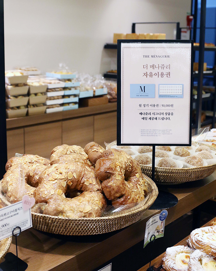 베이커리 정액권을 결제한 고객은 메나쥬리의 인기 제품 5종 중에 1개를 매일 가져갈 수 있다.