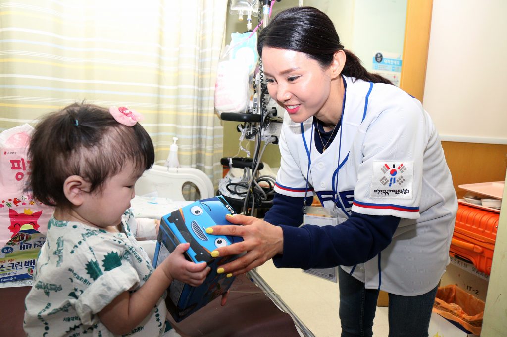 또한 국가대표 선수들이 직접 소아암 환우들이 입원해 있는 어린이 병동을 방문해 스무디킹 음료와 타요 선물세트를 전달하며 격려하는 시간도 가졌다.