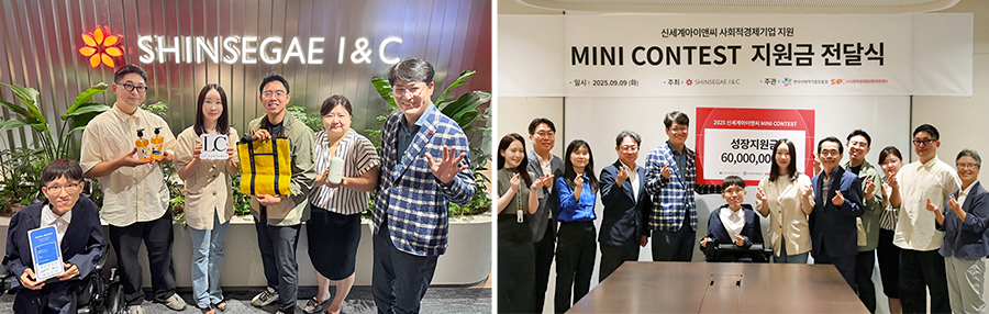 ‘미니콘테스트’는 ESG 관련 사회문제 해결의 선순환 구조 구축을 목표로 사회적경제기업을 지원하는 신세계아이앤씨의 대표적인 사회공헌 사업이다. 지난 9일, 서울 강남구 신세계아이앤씨 본사에서 진행된 ‘미니콘테스트’ 지원금 전달식에는 양윤지 신세계아이앤씨 대표, 한국사회적기업진흥원 서종식 본부장, (사)사회적경제활성화지원센터 이의영 이사장 등 주요 관계자가 참석해 선정기업 5개사에 사업화 자금을 전달했다.