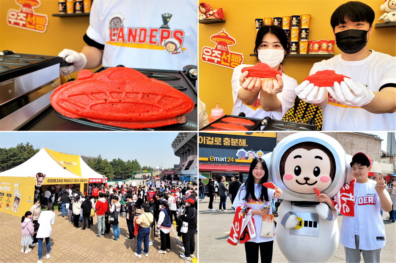 MEDIA 글자 크기 보통 크게 아주 크게 공유하기 페이스북 X 카카오톡 링크 복사 링크 복사됨 도구 보기 이미지 다운로드 이마트24,SSG랜더스필드에 등장한 ‘우주선빵’ 2023.04.03 이마트24