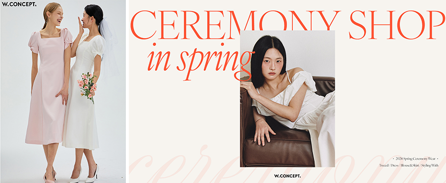 W컨셉이 제안하는 세레모니웨어는 특별한 기념일에 입는 옷이라는 의미로, 20~30세대의 신(新)웨딩문화에 어울리는 웨딩촬영룩, 하객룩과 졸업식룩 등을 통칭한다. 최근 2~3년 전부터 젊은 세대를 중심으로 웨딩 전 친구들과 기념 사진을 찍는 브라이덜샤워가 웨딩문화로 자리잡고, 졸업을 기념해 학교를 배경으로 스냅사진을 찍는 사례가 늘면서 이와 관련한 패션 수요를 포착해 새로운 트렌드를 제안한 것이다.