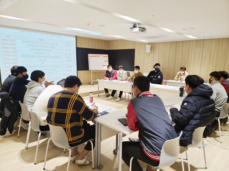 세미나는 작년 시즌 리뷰를 통해 파트 및 선수별 보완점을 진단하고, 23시즌 스프링캠프 훈련 방향성과 정규시즌 운영계획을 수립하기 위해 진행됐다.