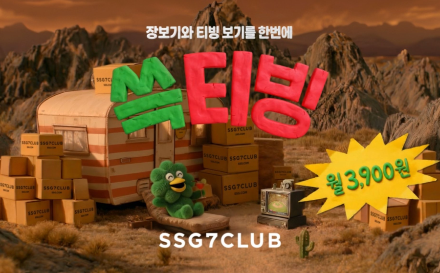 영상은 티빙 공식 리더필름(인트로)으로 시작해 쓱7클럽과 티빙의 결합을 직관적으로 드러낸다. ‘이것은 엄청난 혜택의 인트로일 뿐’이라는 내레이션으로 기대감을 높인 뒤, 야구·예능·드라마를 즐기는 쓱칠이의 모습과 그래픽을 통해 멤버십 회원이 누릴 수 있는 혜택을 부각한다.