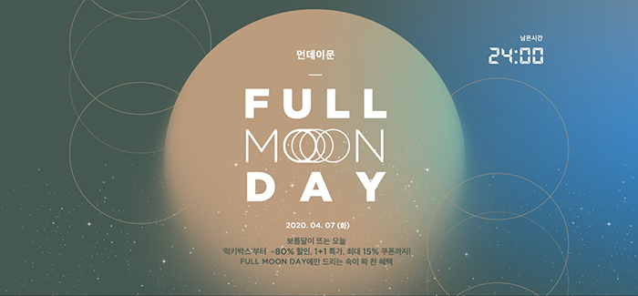 SSG닷컴은 7일 단 하루 뷰티 전문관 먼데이문에서 ‘풀문데이’ 행사를 실시한다고 6일 밝혔다. 4월 7일은 음력으로 3월 15일, 즉 보름달이 뜨는 날이다. SSG닷컴은 보름달이 주는 풍성한 이미지와 연계해 고객에게 다양한 혜택을 제공하기 위해 이번 행사를 기획했다.