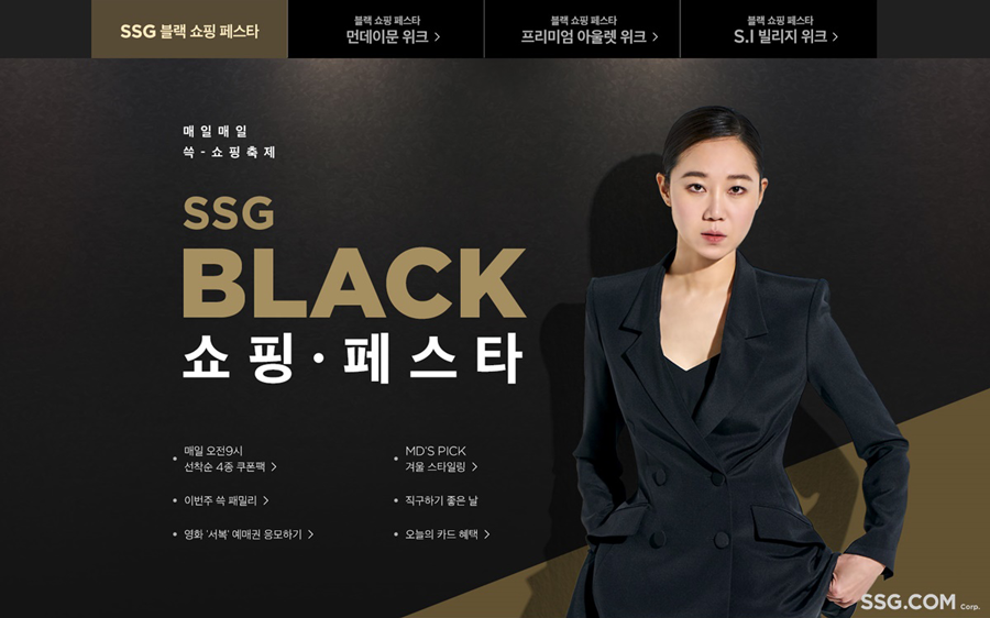 SSG닷컴이 16일부터 29일까지 2주간 ‘쓱 블랙 쇼핑 페스타’ 프로모션을 진행한다고 15일 밝혔다. SSG닷컴은 이번 행사를 할인 카테고리에 따라 크게 2회로 나눠 진행할 계획이다. 16일부터 22일까지는 패션과 뷰티, 스포츠, 유아동을 중심으로, 23일부터 29일까지는 가전, 생활, 식품 카테고리 상품 할인에 들어간다.