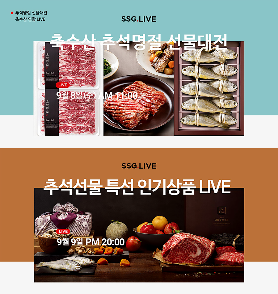 SSG닷컴은 8일부터 14일까지 추석 명절을 앞두고 자체 라이브커머스 채널 ‘쓱라이브(SSG.LIVE)’에서 선물세트 릴레이 라이브방송을 진행한다고 밝혔다. SSG닷컴 단독 기획 ‘정담’, 이마트 신선 세트, 신세계백화점 프리미엄 세트 등 다양한 선물세트를 생동감 있게 소개하고 인기 상품을 최대 62% 할인한 파격 특가에 판매한다. 방송 시청 고객과 구매 고객에게는 사은품 및 상품권 추가 증정 등 풍성한 혜택을 제공할 계획이다.