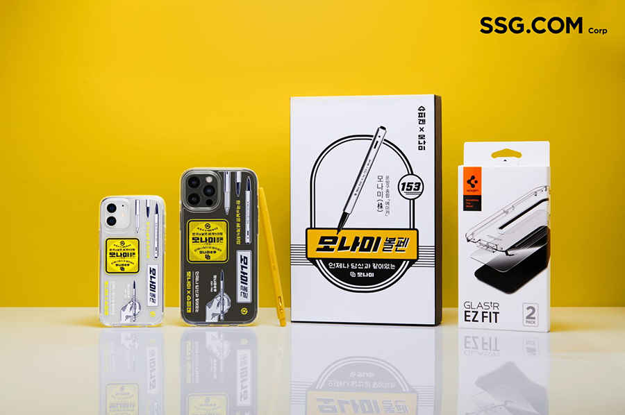 SSG닷컴은 오는11일 문구 기업 ‘모나미’의 브랜드 아이덴티티를 IT액세서리 전문기업 ‘슈피겐코리아’의 베스트셀러 모델에 적용한 ‘아이폰 12전용 슈피겐 X 모나미 콜라보 패키지’를 2천개 한정 판매에 나선다고 밝혔다.