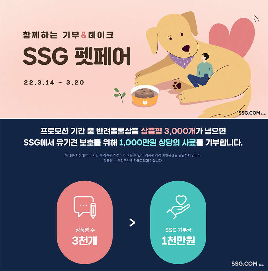 SSG닷컴, 고객이 상품평 작성하면 SSG닷컴이 사료 기부… ‘기부앤테이크 펫 페어’