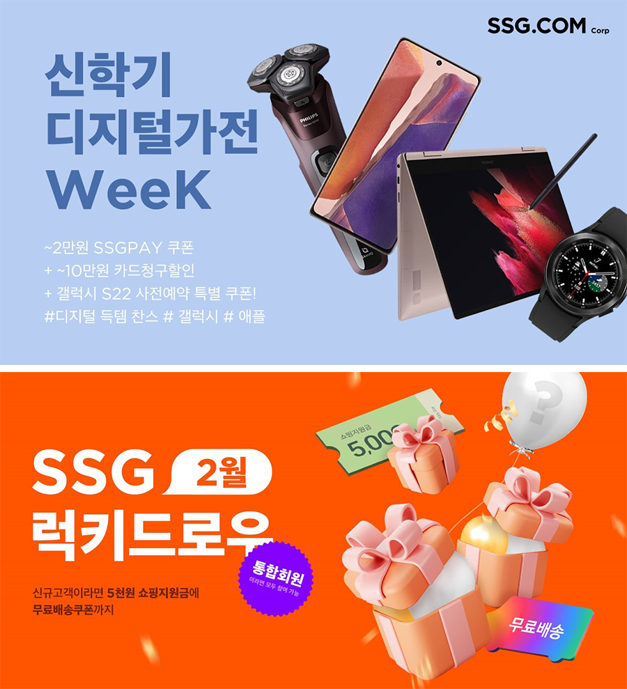 SSG닷컴이 ‘디지털 가전 행사’와 한정판 스니커즈를 대표 상품으로 내세운 ‘럭키 드로우 이벤트’를 동시에 열고 새 학기 개강을 앞둔 MZ세대 고객 잡기에 속도를 낸다.