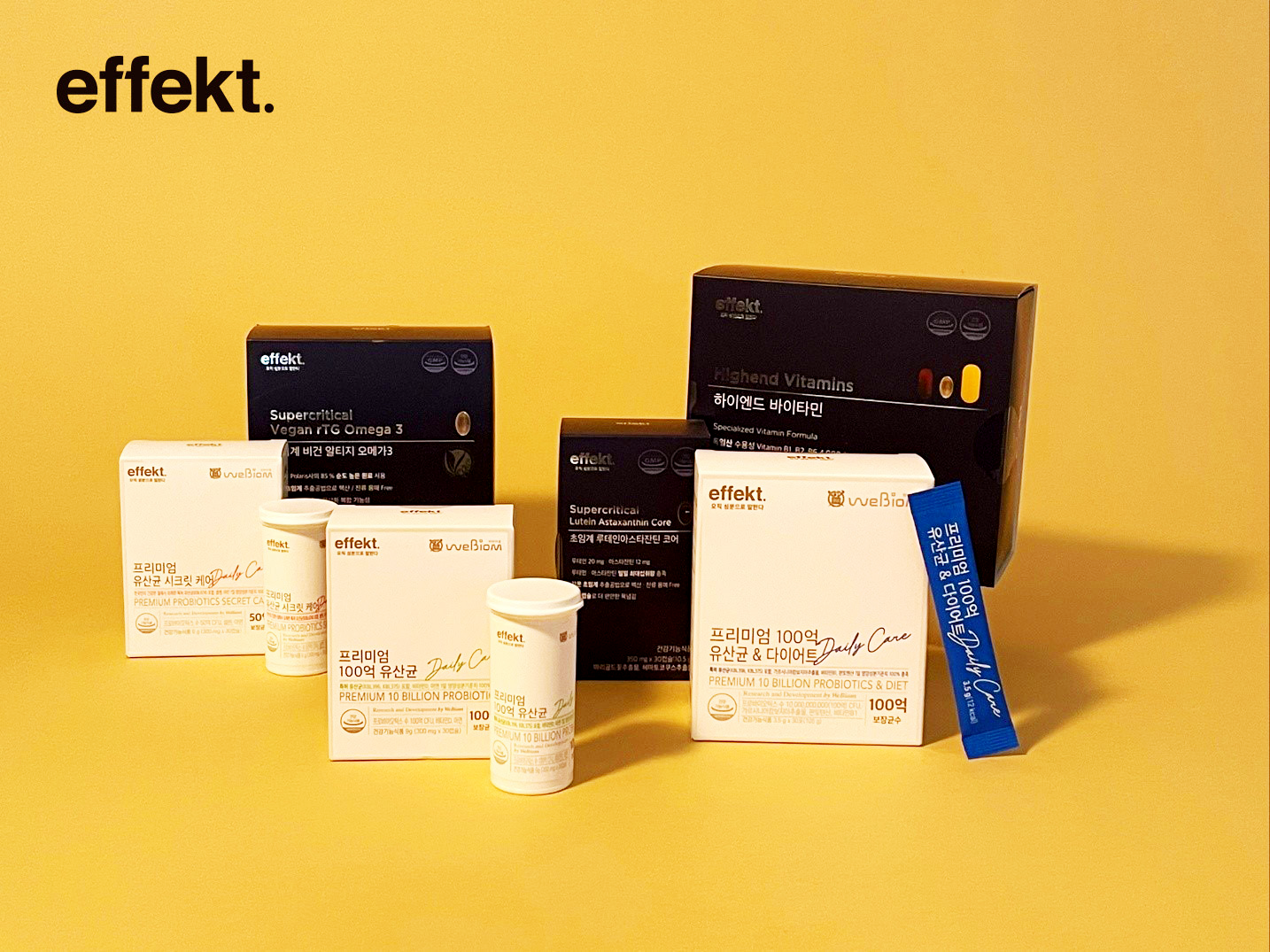 지난 2021년에 출시한 이마트 건기식 자체브랜드 ‘바이오퍼블릭(Biopublic)’이 합리적인 가격과 우수한 품질로 건기식 대중화에 방점을 뒀다면, ‘이펙트’는 프리미엄 건기식 시장을 타깃으로 최상의 원료 선택과 고함량 성분으로 개발된 제품이다.