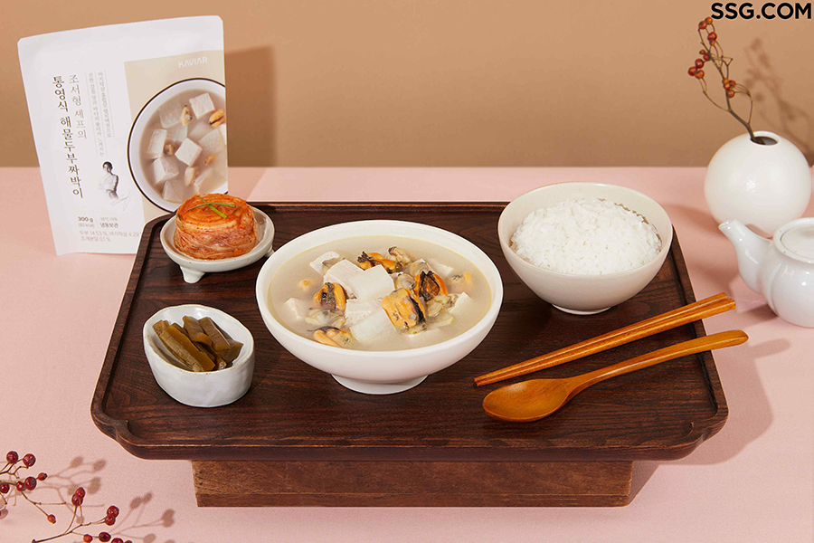 ‘통영식 해물두부짜박이(300g, 4980원)’는 홍합살과 조갯살에 멸치액젓을 가미해 감칠맛을 극대화한 것이 특징이다. 가열 시간에 따라 국물요리로도 조리 가능해 식사 및 안주 용도로 활용도가 높다.