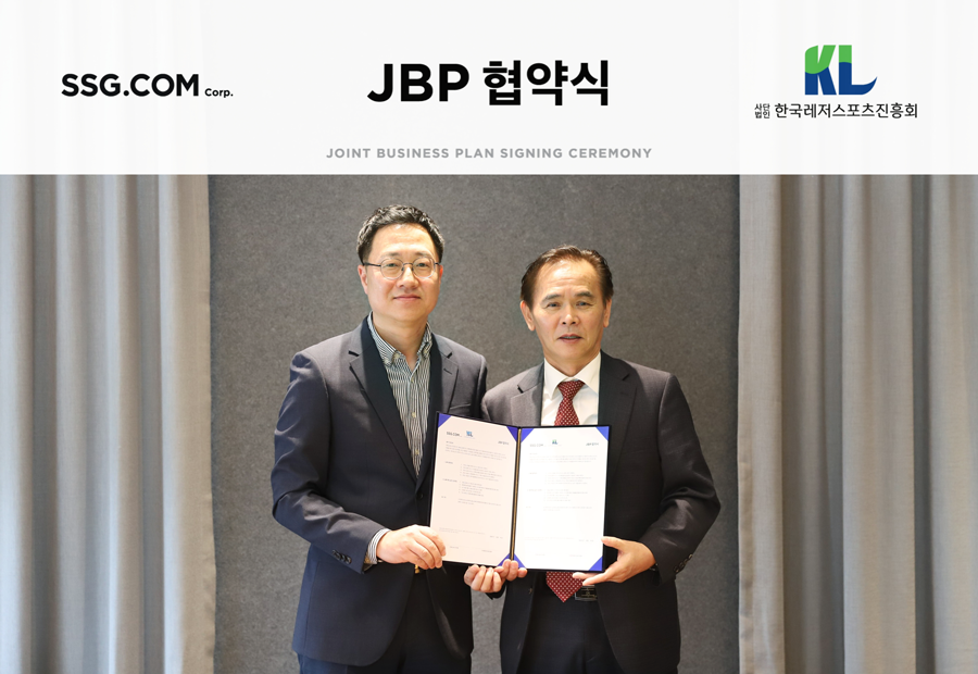 이날 서울 역삼동 SSG닷컴 본사에서 열린 협약식에는 신익수 SSG닷컴 스포츠MD팀장, 김창수 사단법인 한국레저스포츠진흥회 회장과 임원들이 참석했다.