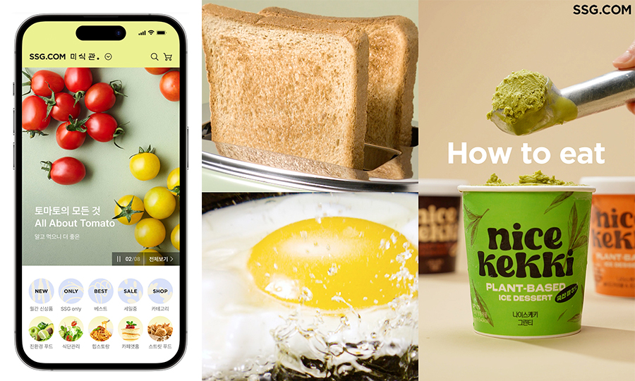 또한, SSG닷컴은 온라인에서도 그로서리를 생생하게 경험할 수 있도록 콘텐츠 구성을 다변화했다. 오감을 극대화하는 먹음직스러운 먹거리 영상과 세련된 푸드 스타일링으로 촬영한 사진, 맛있게 즐기는 방법을 알려주는 숏폼 등을 만나볼 수 있다.