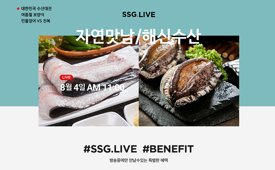 SSG닷컴은 오는 4일 오전 11시부터 한 시간 동안 ‘쓱라이브(SSG.LIVE)’를 통해 ‘VJ쓱공대 1탄! 전복 VS 민물장어’ 라이브방송을 실시한다고 3일 밝혔다.