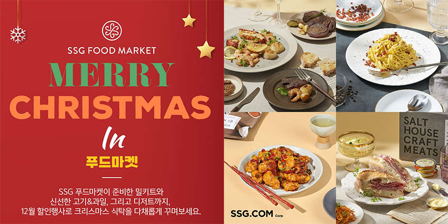 먼저, 28일까지 ‘메리 크리스마스 인 푸드마켓(Merry Christmas in FOODMARKET)’ 행사를 진행한다. ‘바위파스타바’, ‘소금집’, ‘붓처스컷 X 바이킹스 워프’ 등 유명 맛집 밀키트는 물론, 간편식 스테이크와 호텔 베이커리 등을 엄선해 최대 40% 할인한 가격에 선보인다.