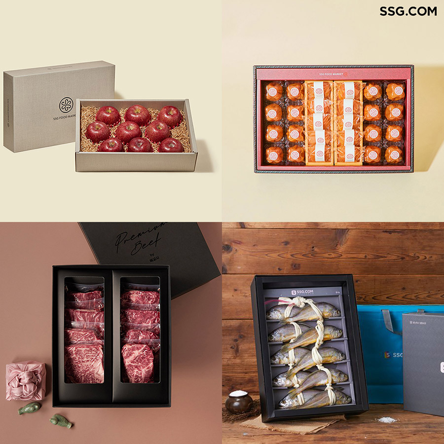 SSG닷컴은 선물세트를 고민하는 고객을 위해 담당 MD가 직접 엄선한 최상급 품질의 ‘실패 없는’ 선물을 소개한다. 과일에서는 ‘사과계의 명품’이라 불리는 ‘감홍사과 세트 9입(3.6kg)’을 200세트 한정수량 8만원대에 판매한다. 감홍사과는 문경 산지에서 우수 생산자가 재배한 품종으로, 다른 품종에 비해 크기가 20% 크고 당도가 높은 것이 특징이다. 6만원대 ‘선원규 아람 곶감세트 26입(1.3kg)’도 함께 추천한다. 20년 이상 곶감을 키운 생산자가 재배한 상품으로, 50g 이상 상주곶감으로만 구성해 크기와 품질이 우수하다.